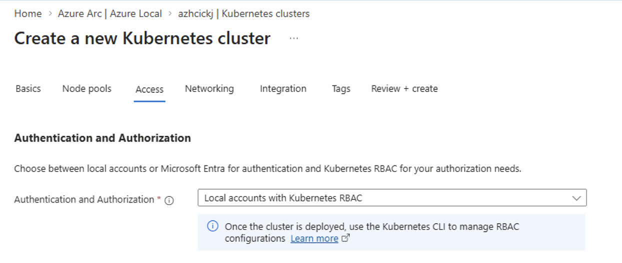 And because I had selected Local accounts with Kubernetes RBAC doing deployment: