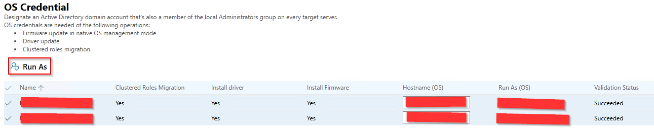 - Select Run As and input domain credentials for user that have local administrator permissions to all nodes in the stack: