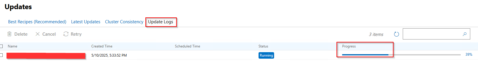 Once all patching has completed, we get the 100% and completed state on the job: