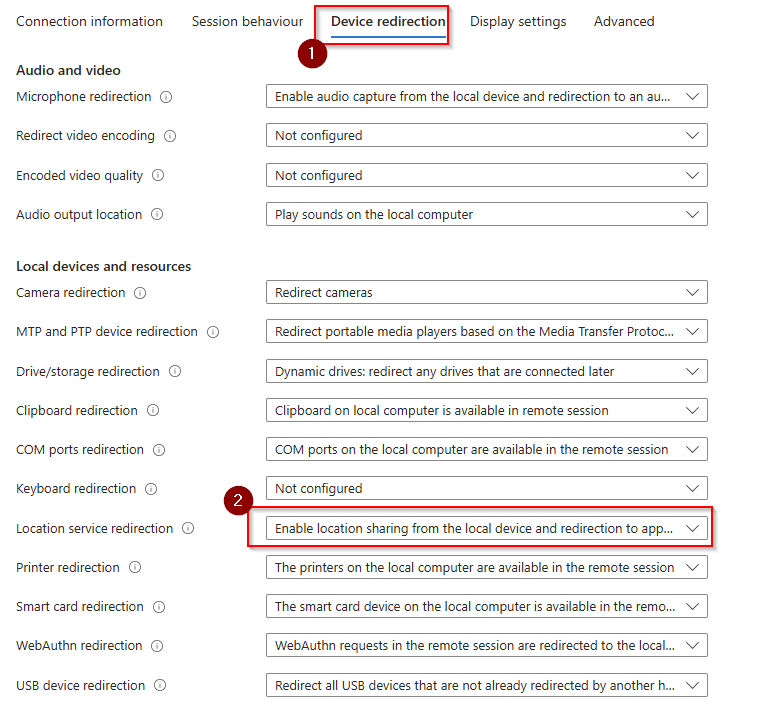 Azure Virtual Desktop – Enable location Services redirection