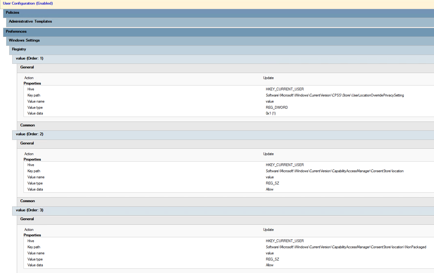 Key Path: Software\Microsoft\Windows\CurrentVersion\CPSS\Store\UserLocationOverridePrivacySetting