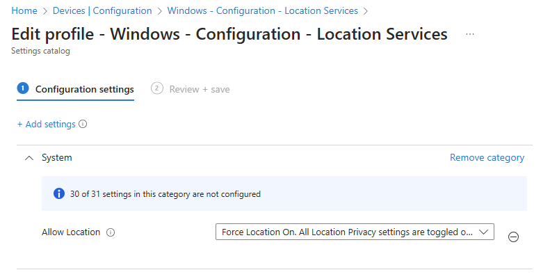 To enable location services using Microsoft Intune: