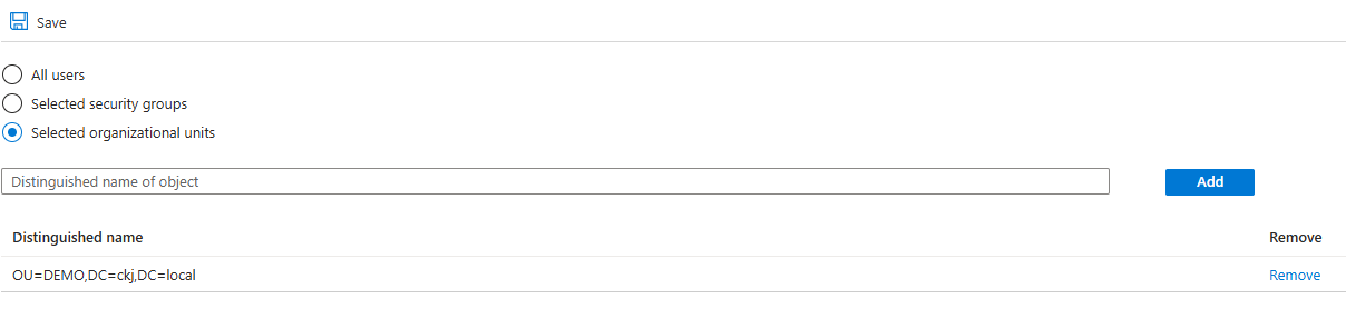Note that you can only one method – if you want to switch from OU to groups, this will clear the OU selections: