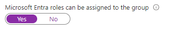 - Create 1 assigned group in Entra ID – that group must be enabled for Entra roles. Call it: SEC_PIM_GA