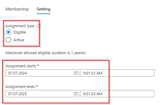 - Assign members to the eligible- and approver group