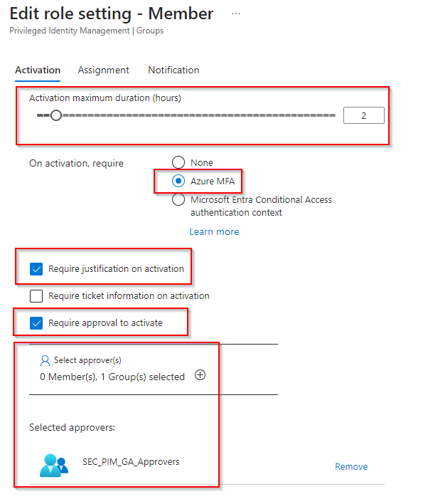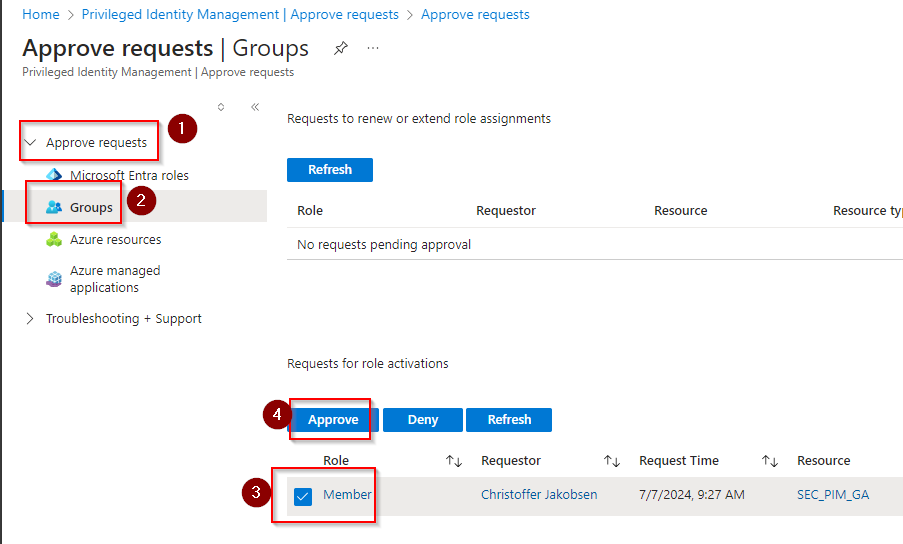 . - Go to the group in Entra ID called: SEC_PIM_GA_Approvers