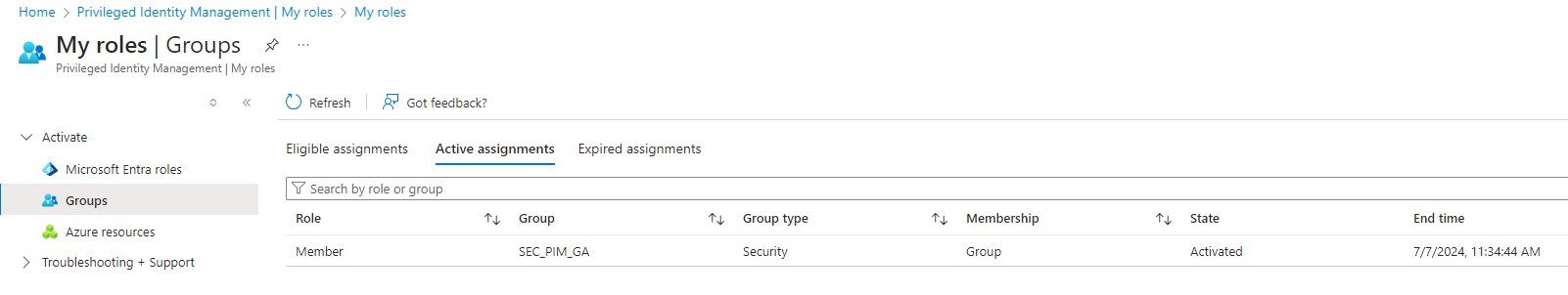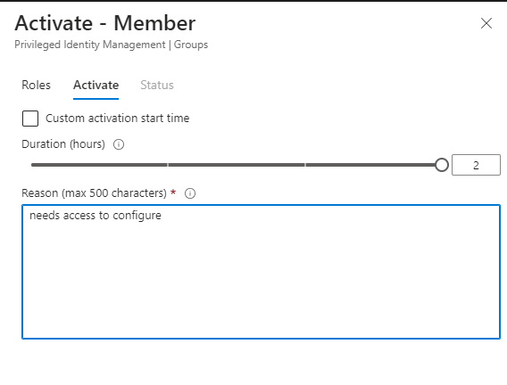 - Now the requester is active for the role by the group, for the duration for 2 hours