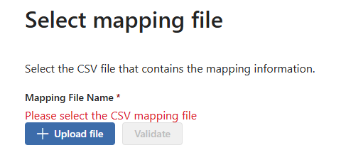 - Import the mapping file when you have uploaded files and proceed in the portal. Remember to validate the file.