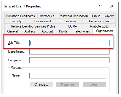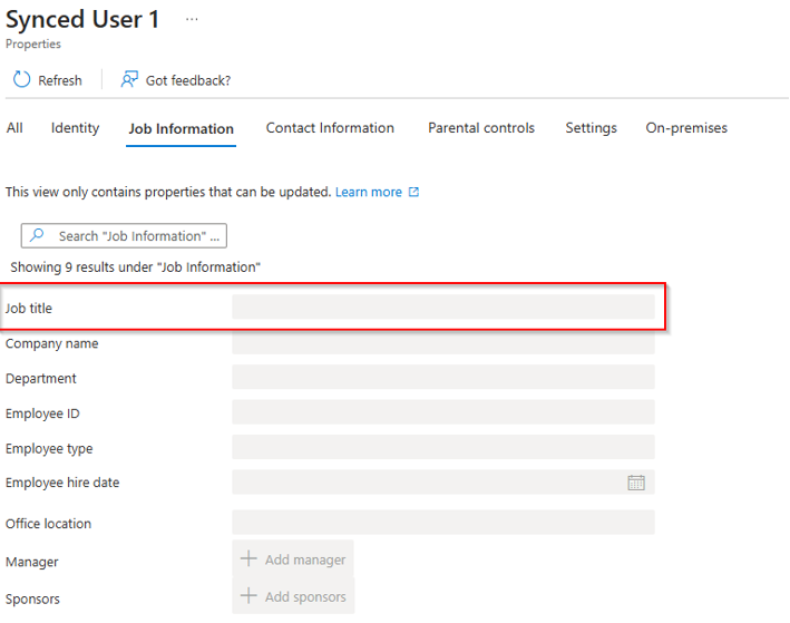 Also, then I look at the user now in Entra ID, title is gone?! – this is because allmost any attribute of a synced user, must be filled out in Active Directory and cannot be updated in Entra ID.
