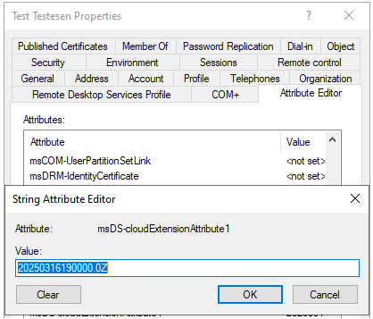 Because the users are going to been synced from Active Directory, the “EmployeeHireDate” field in Entra ID is not going to get managed from Entra ID. And since this field does not exist in Active Directory, we have to make a custom mapping first.
