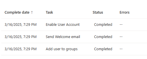 In Lifecycle Workflow we can also see that all tasks ran successfully: