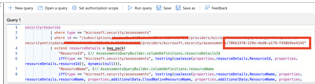 And if we select “Open query”, we can actually see the id of the assessment, that matches the assessmentKey from our JSON output in our exemption: