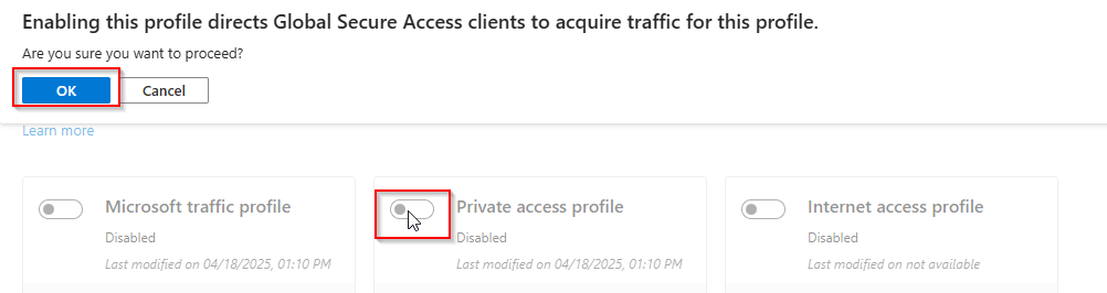 Enable the Private Access Profile: