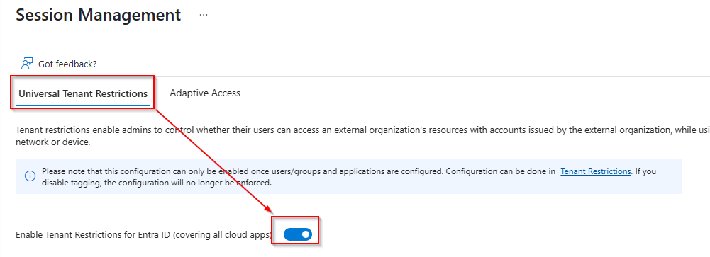 Enable universal tenant restrictions: