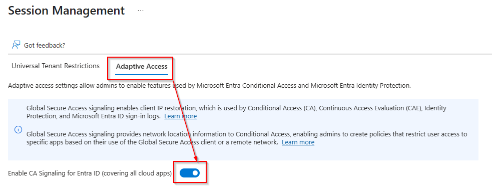 Navigate to Global Secure Access < Settings < Session Management