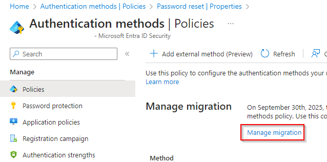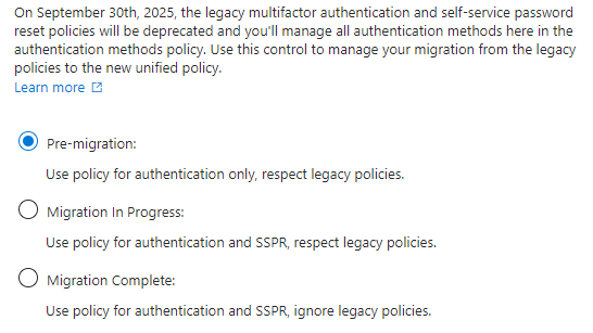 This guide will assist in the proces of migrating from legacy MFA and legacy SSPR, to the new converged authentication methods. On September 30th, 2025, the legacy multifactor authentication and self-service password reset policies will be deprecated and you’ll manage all authentication methods in the authentication methods policy.