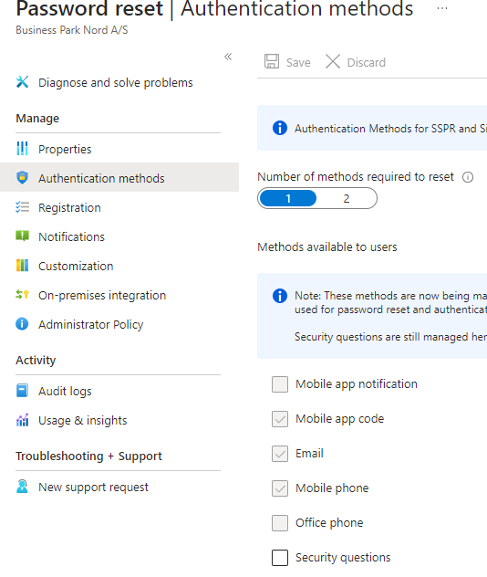 – The Number of methods required to reset control: admins can continue to change how many authentication methods must be verified before a user can perform SSPR.