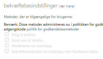 After all authentication methods are fully migrated, the following elements of the legacy SSPR policy remain active: