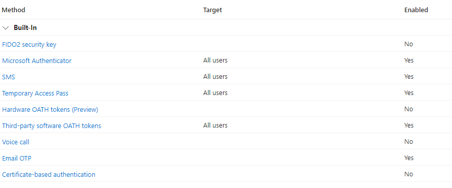 (https://entra.microsoft.com/#view/Microsoft_AAD_IAM/AuthenticationMethodsMenuBlade/~/AdminAuthMethods/fromNav/Identity )