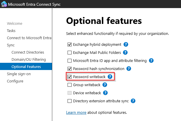 And then under Optional Features, make sure “Password writeback” is enabled: