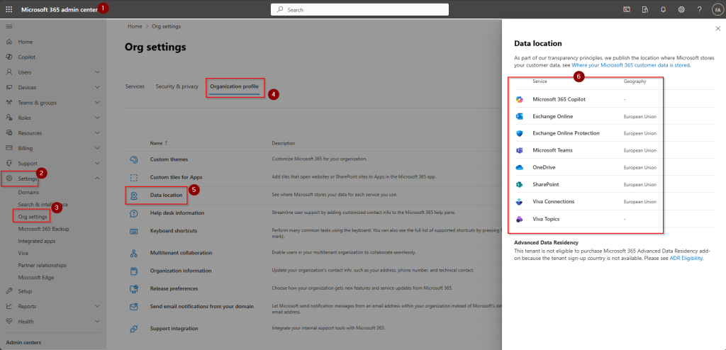 Data Residency to other Microsoft 365 Services – Microsoft 365 Enterprise | Microsoft Learn