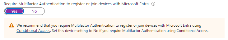 However Microsoft recommends disabling this feature (enabled by default) and enforcing via a conditional access policy instead.