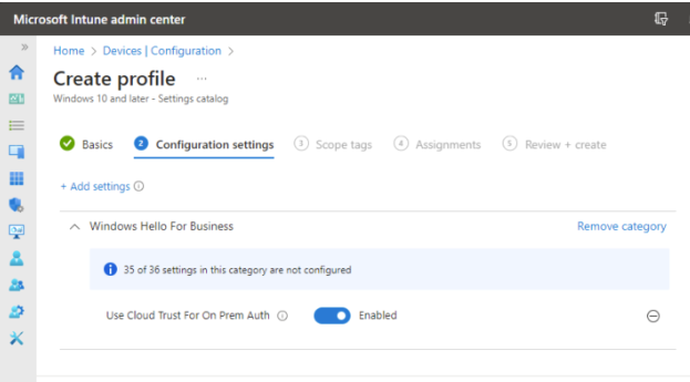 - Select Windows Hello for Business as category