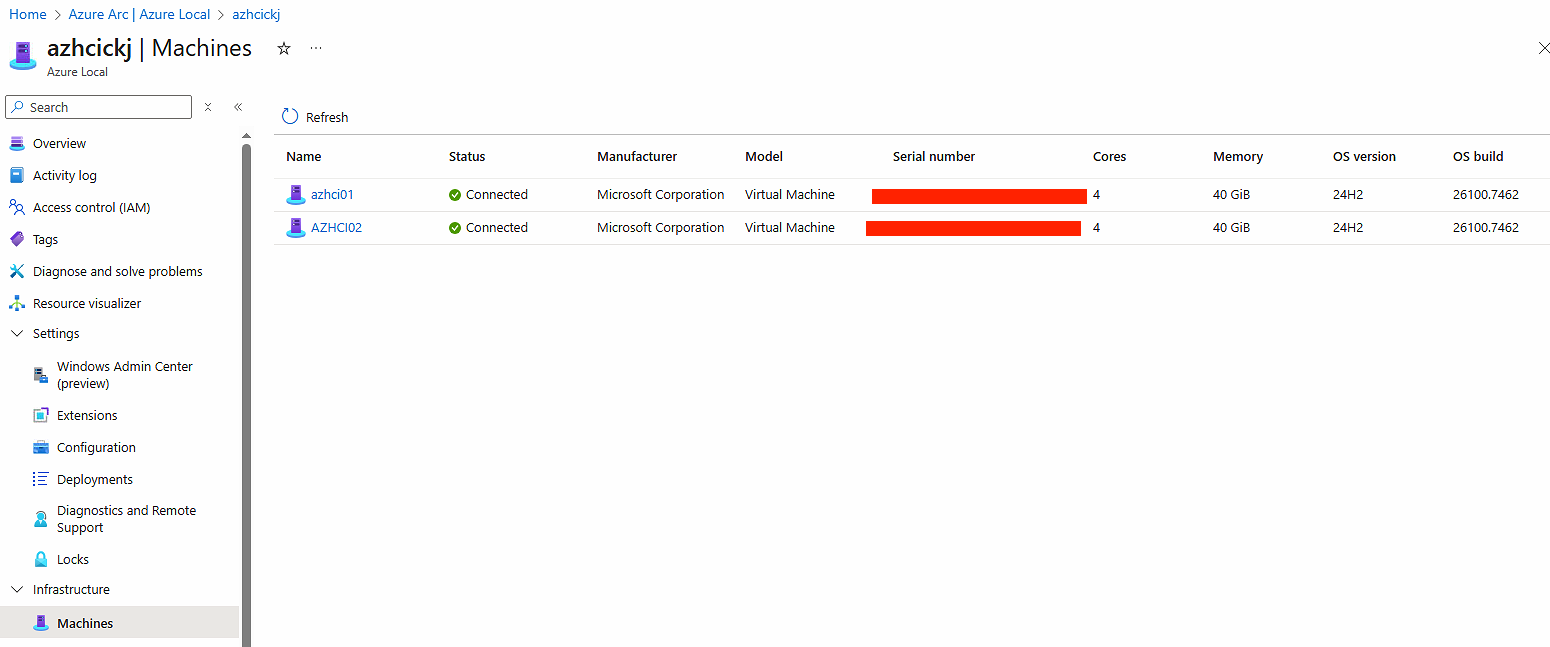 I has to make sure there was a decent amount of memory in the physical hardware. Even powerful workstations with 64 GB memory would struggle to provide me with a working homelab, since each Azure Local node require a minimum of 32 GB memory, and the physical hypervisor would also need available memory.