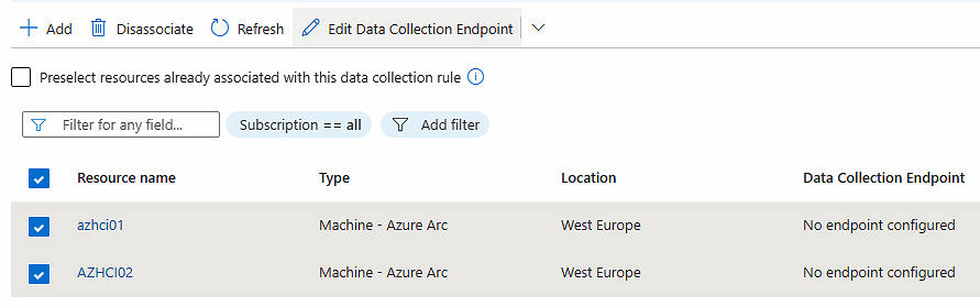And note that your nodes are seen as resources. Ensure that they are connected to the data collection endpoint, or perform the association