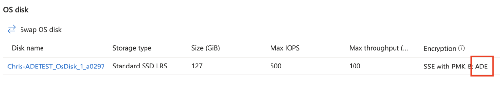 And the disk is enabled for ADE: