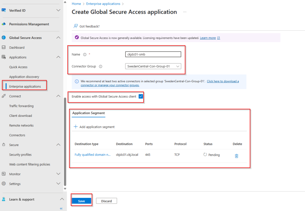 Microsoft Global Secure Access – Private Access – Part 3 – Configure target application