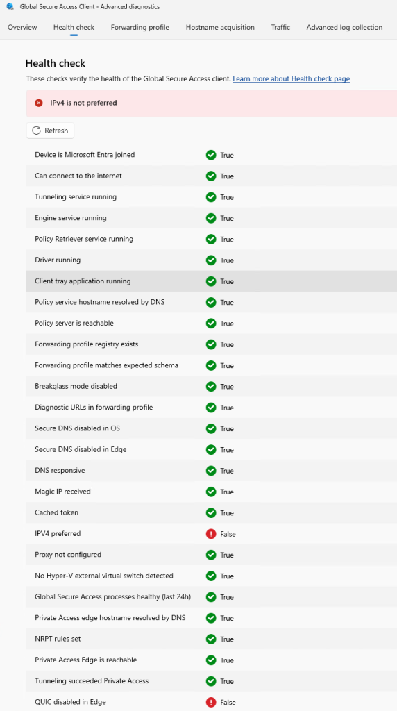 To validate the configration I open the Advanced Diagnostics within Global Secure access: